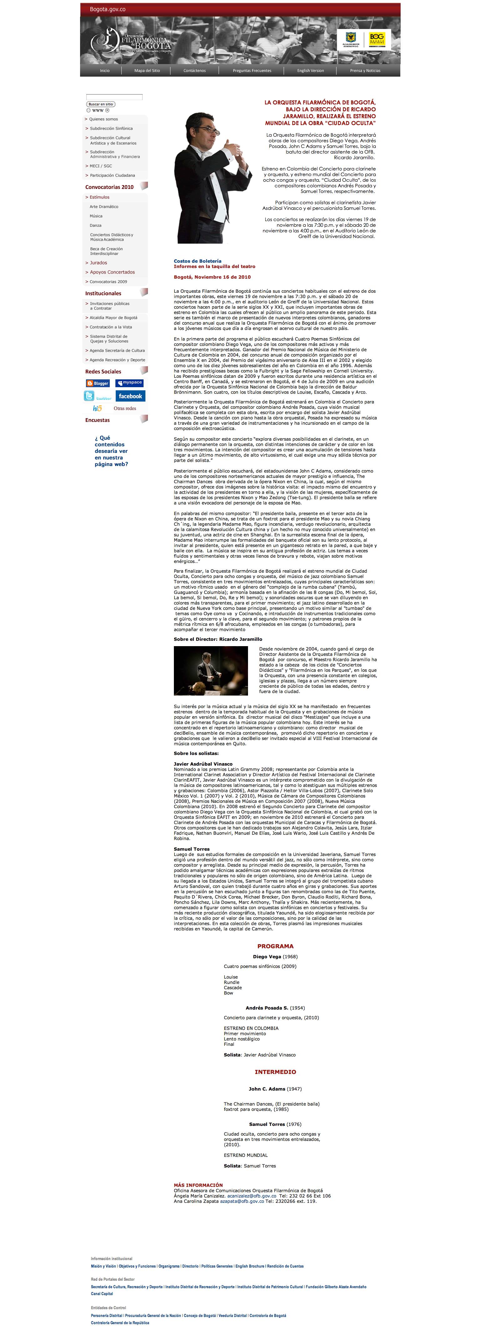 Esta grabación: Orquesta Sinfónica Eafit; Cecilia Espinosa, directora; Javier Vinasco, clarinete